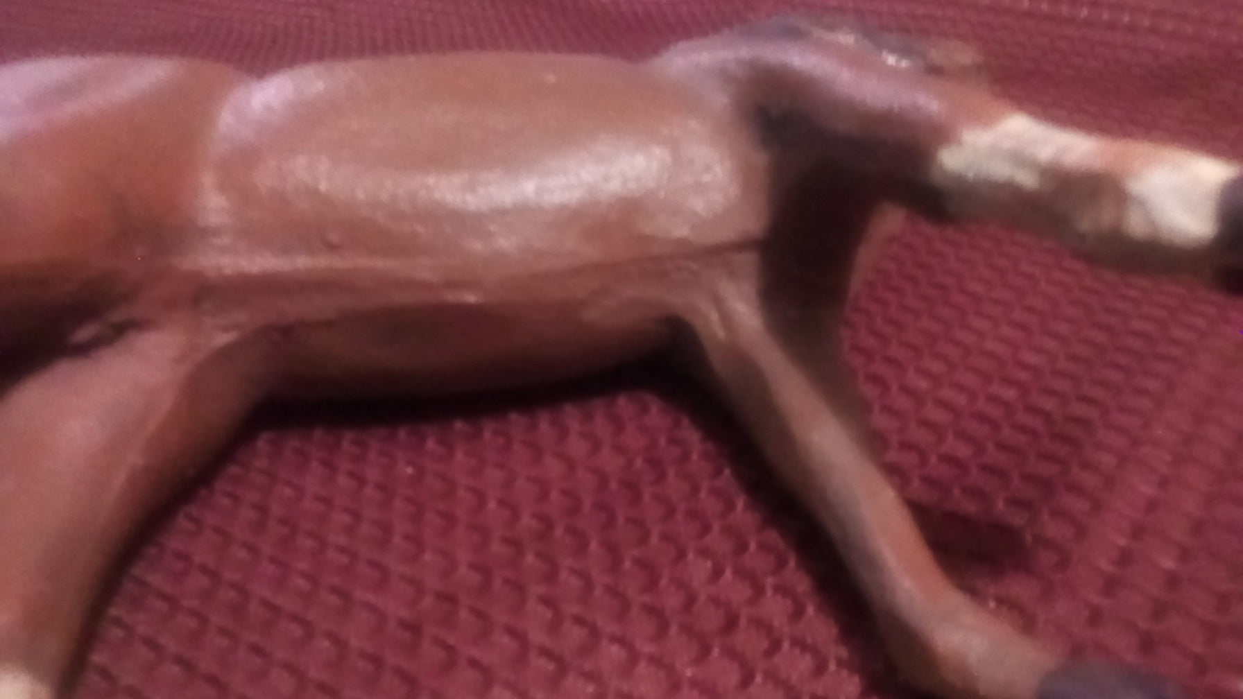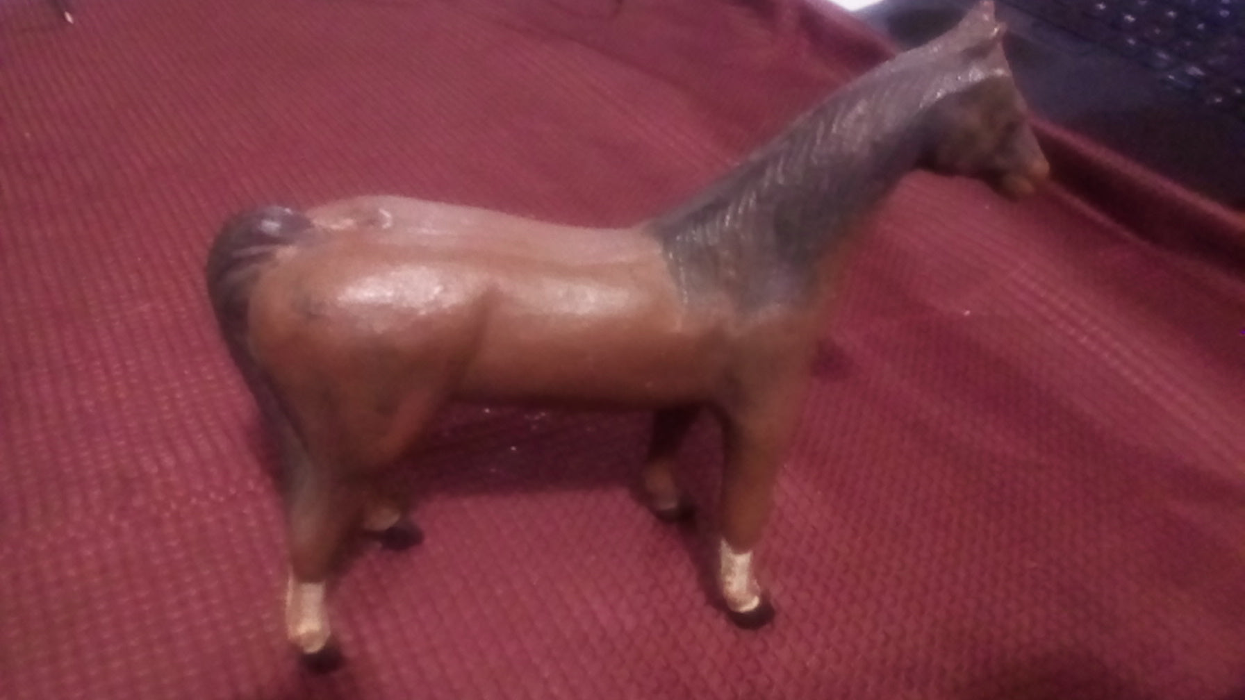 The Markings: Notice the striking, weathered paint—the deep bay coat, the distinctive dark mane, and the bold white socks and blaze. Every chip, every faded line tells a story of a life well-lived.