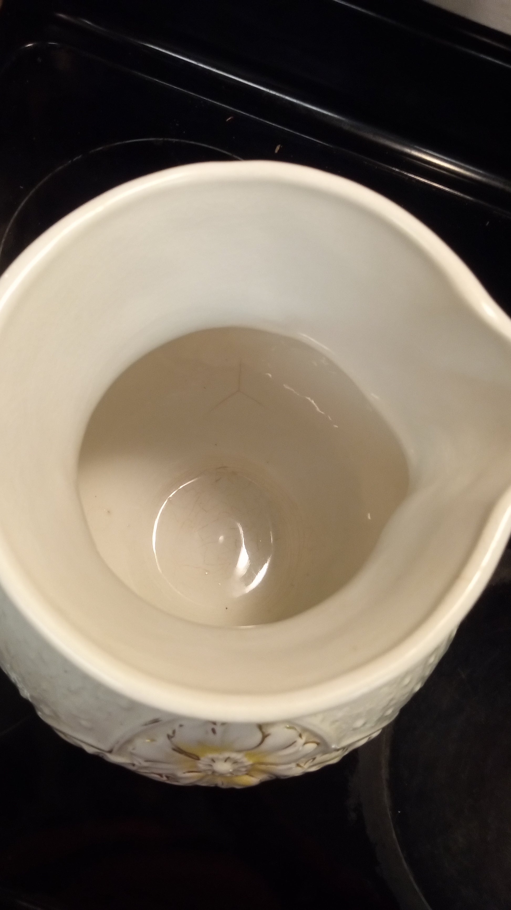 Bring timeless elegance into your home with this large vintage ceramic water pitcher.