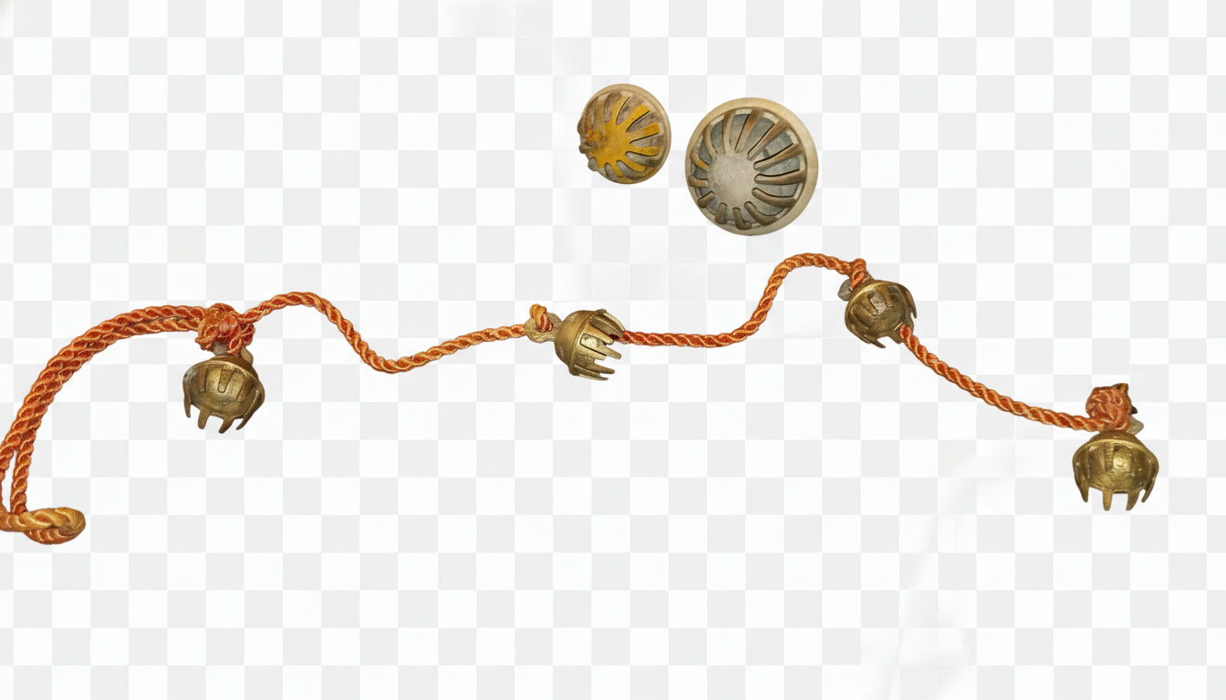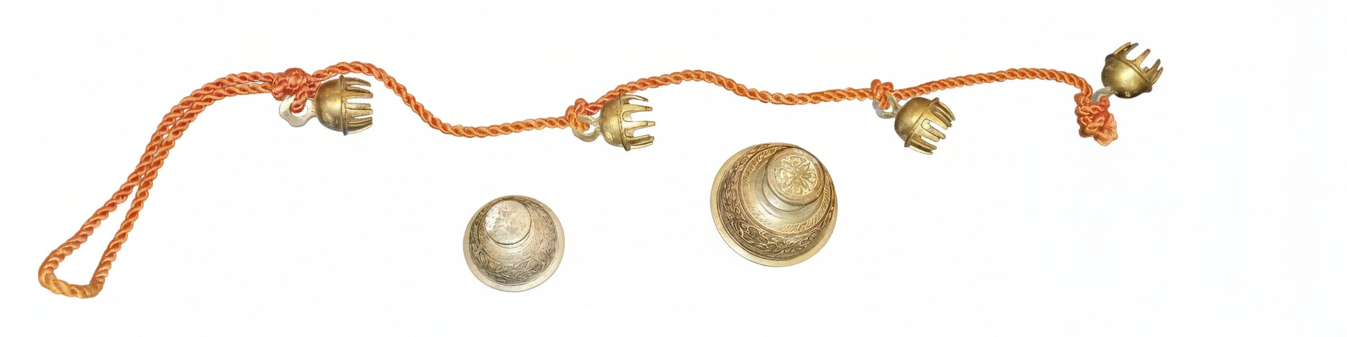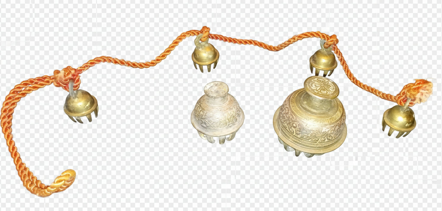 Lot Includes: 1 Large Bell, 1 Medium Bell, and 1 Rope of 4 Bells (Total 6 pieces).