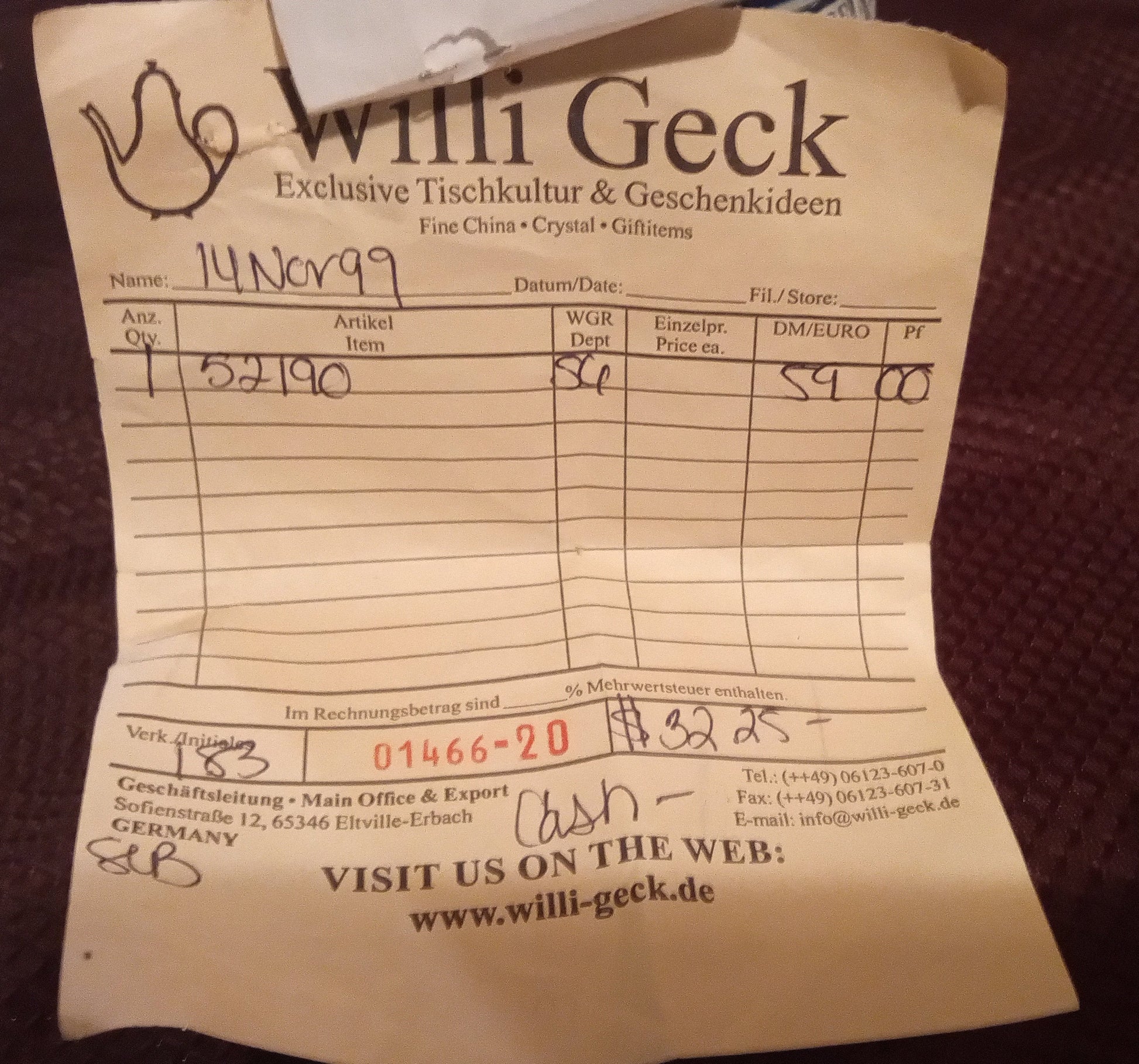 The original 1999 purchase receipt is included—a rare piece of provenance that confirms its origin and date, turning a beautiful collectible into a documented artifact.