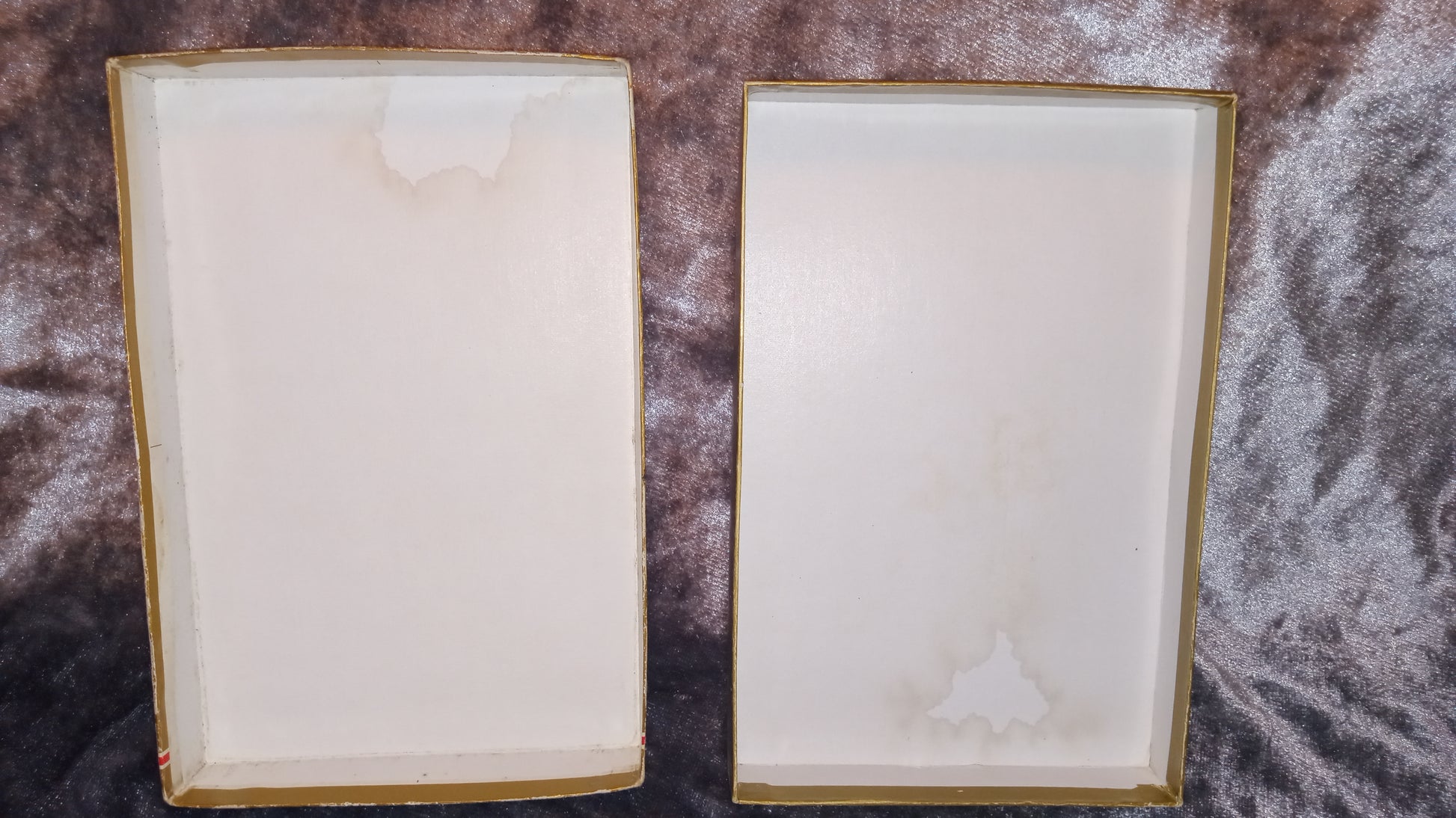 🪶 Condition: Complete – Inner contents like new; box has moderate to heavy shelf/storage.see pics I side box has minor stain.Otherwise Excellent