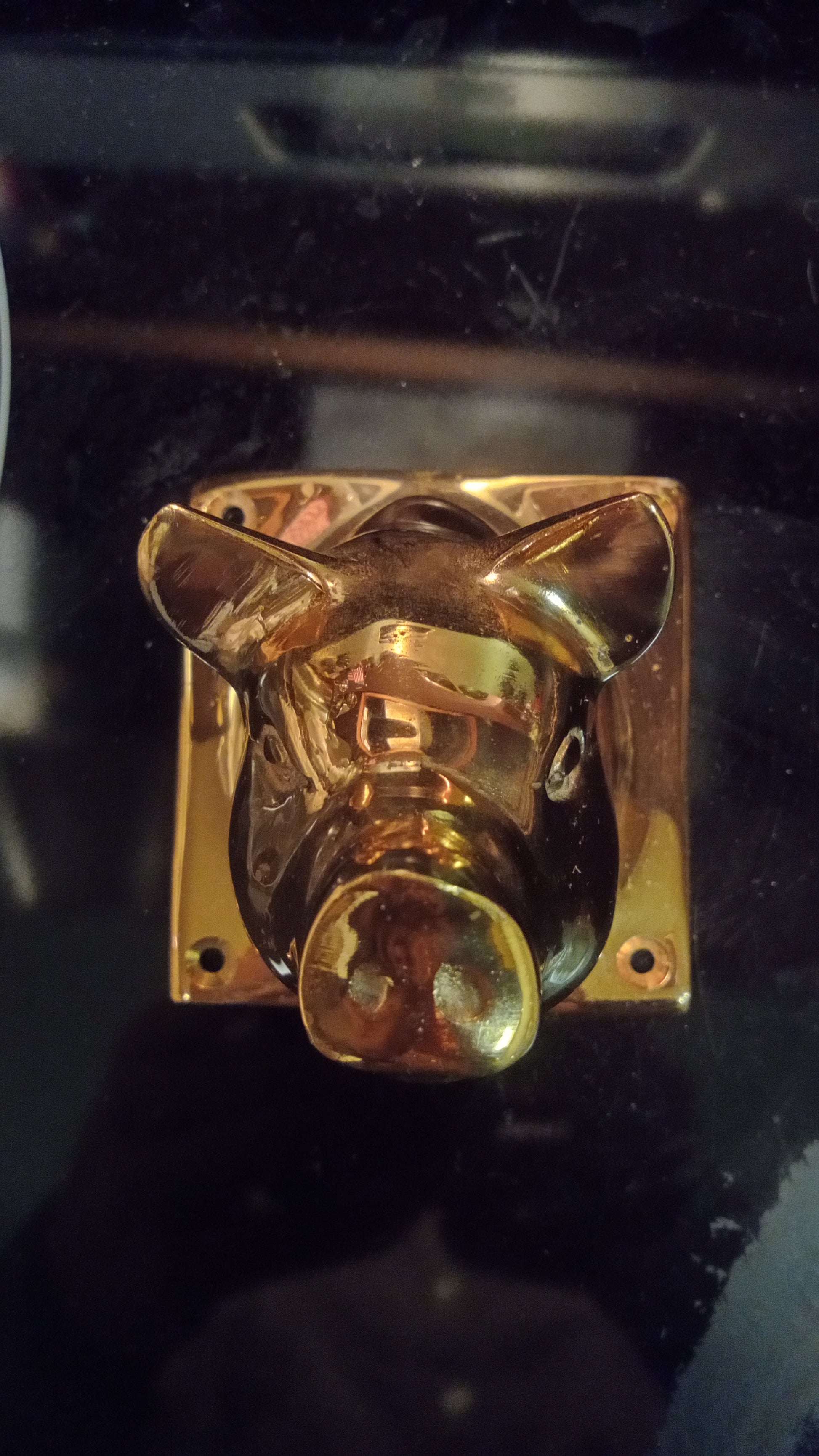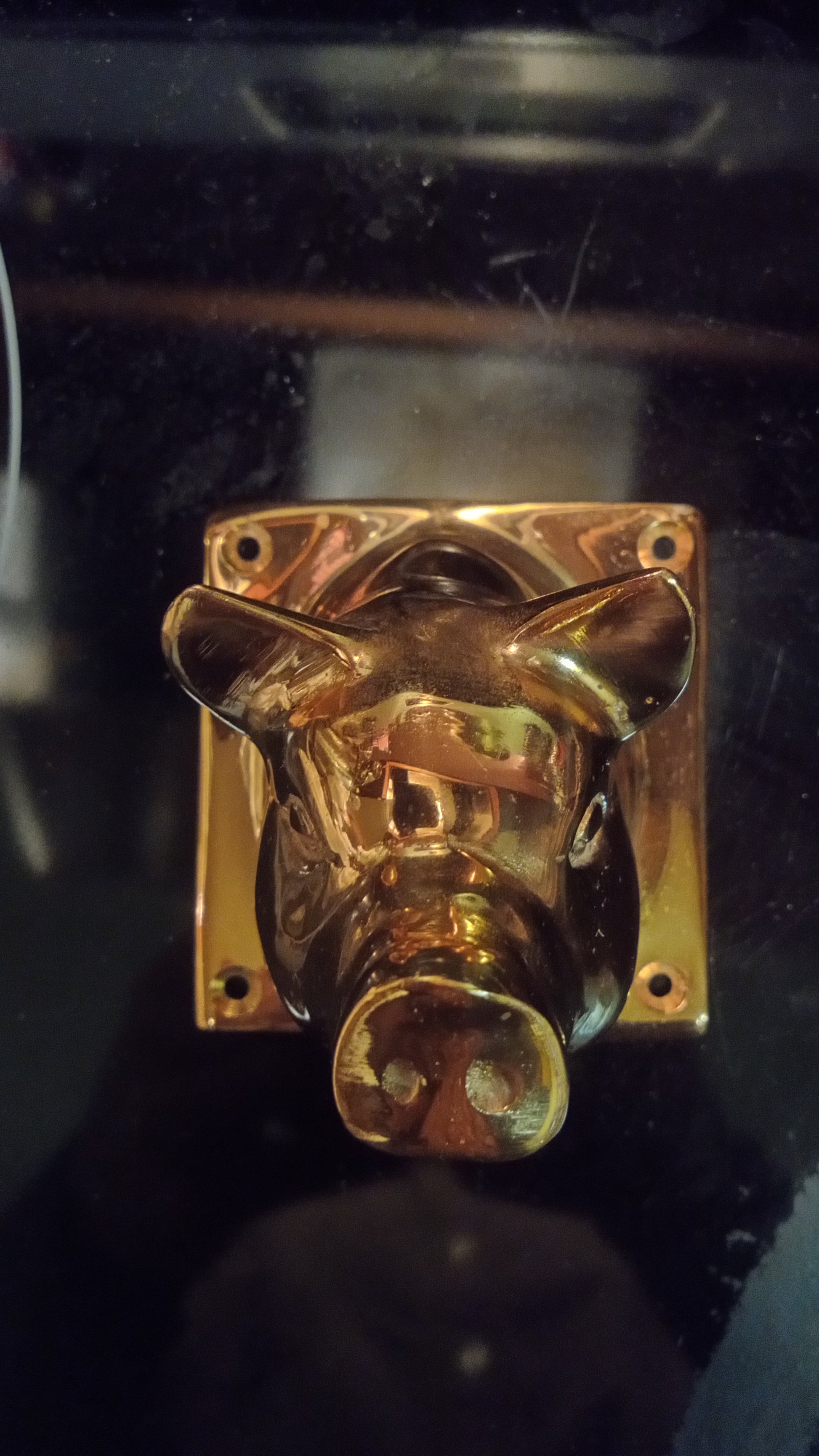 Once upon a time, this little piggy didn't go to marketāit went to a charming 1950s farmhouse, where it was proudly mounted on the nursery wall. For decades, this heavy, solid copper pig head was a silent, smiling guardian, holding everything from children's tiny winter coats to a sweet-smelling cotton robe.