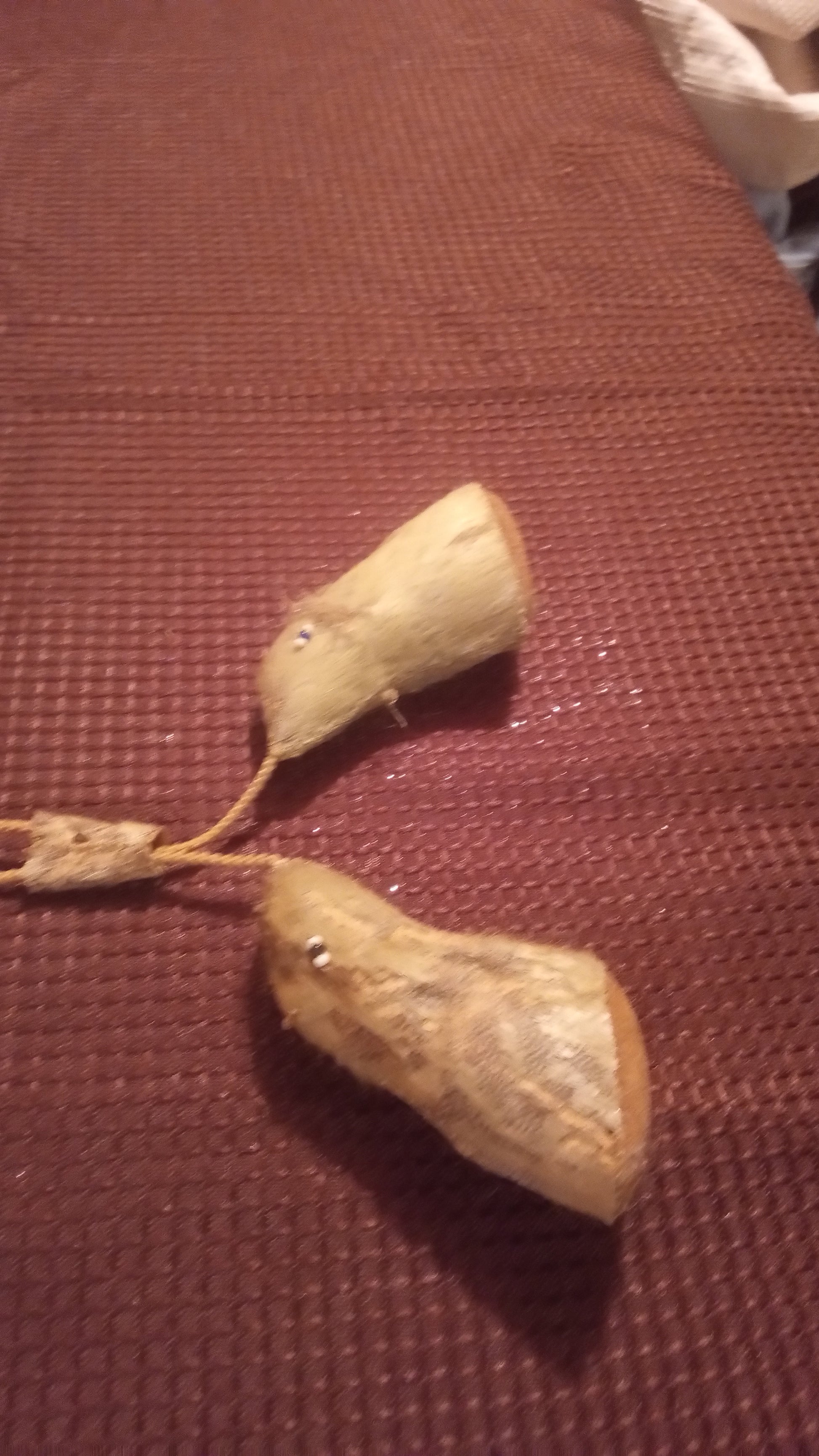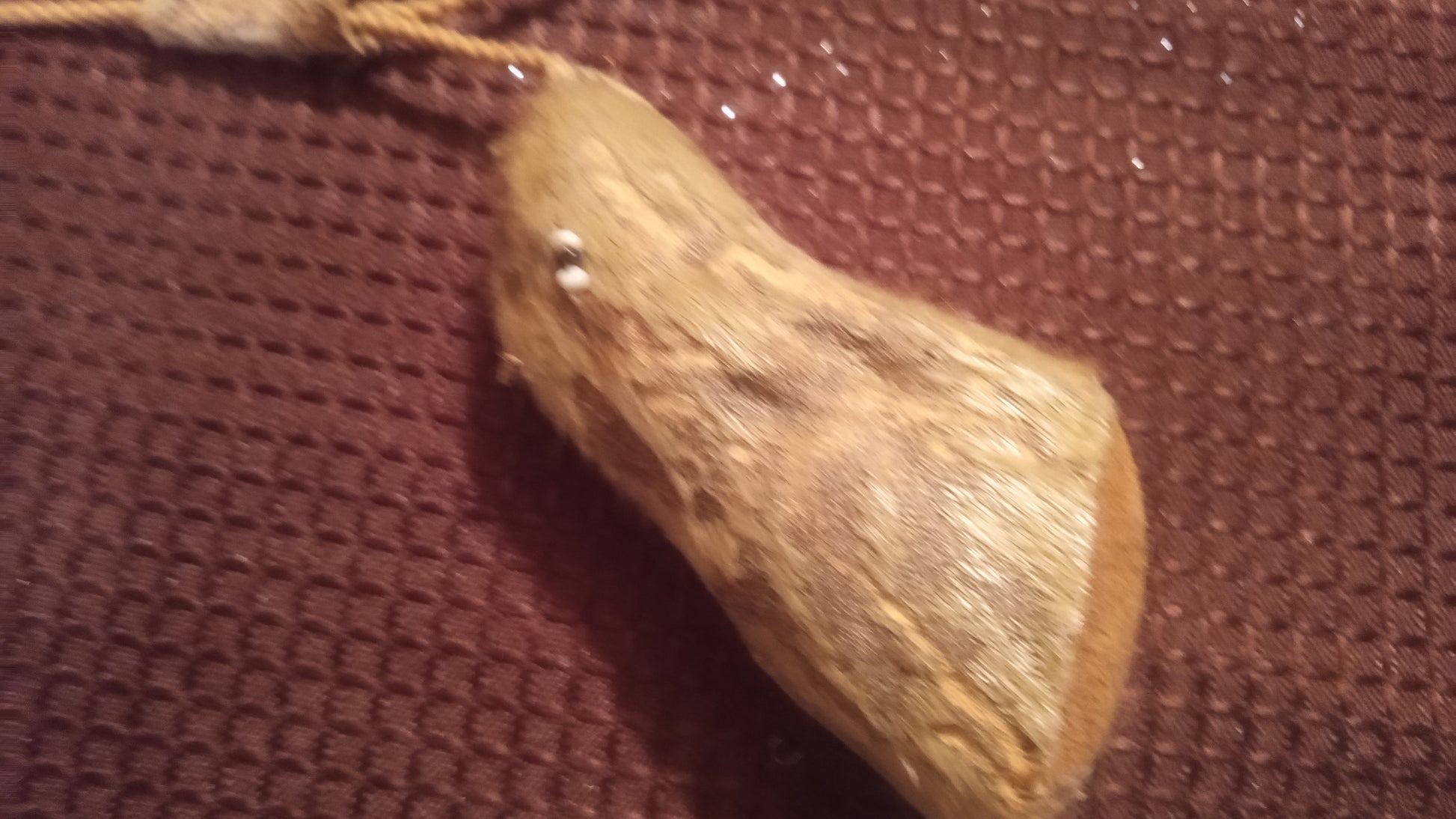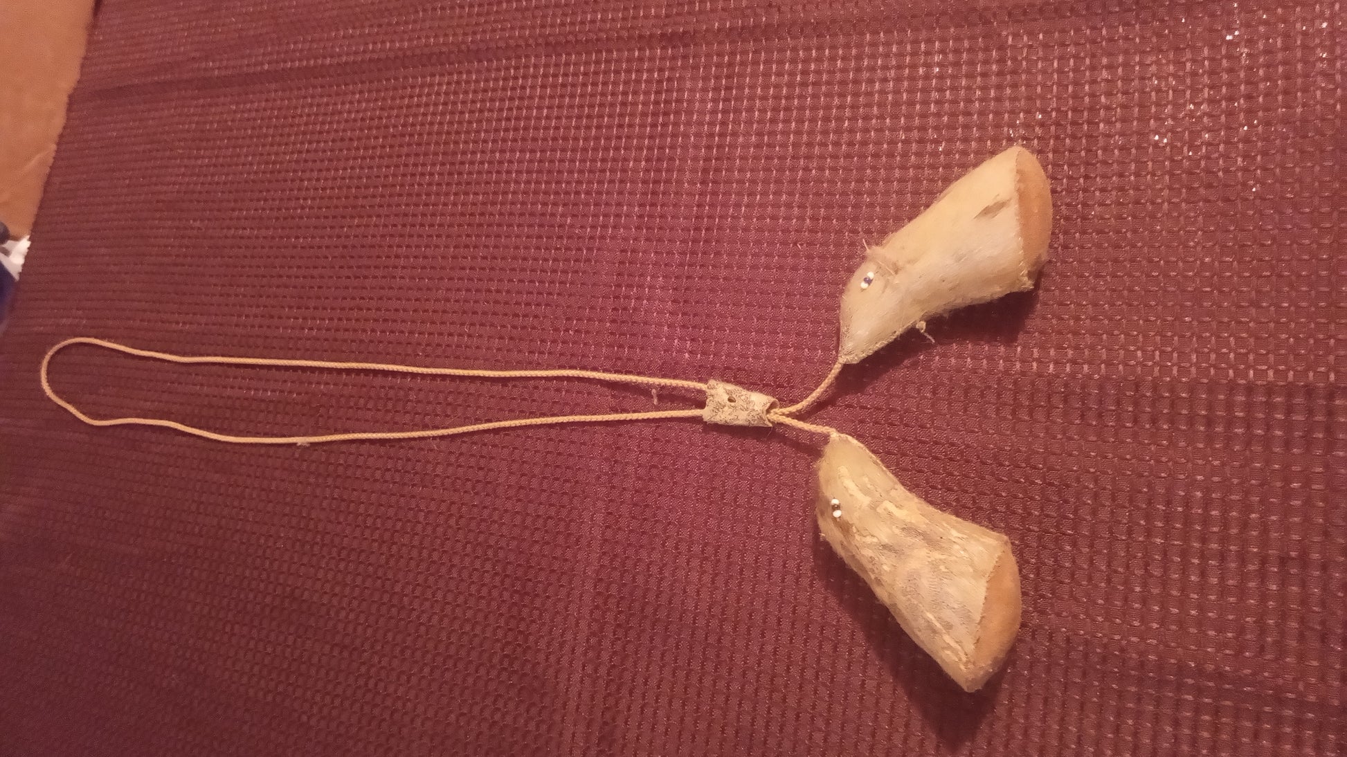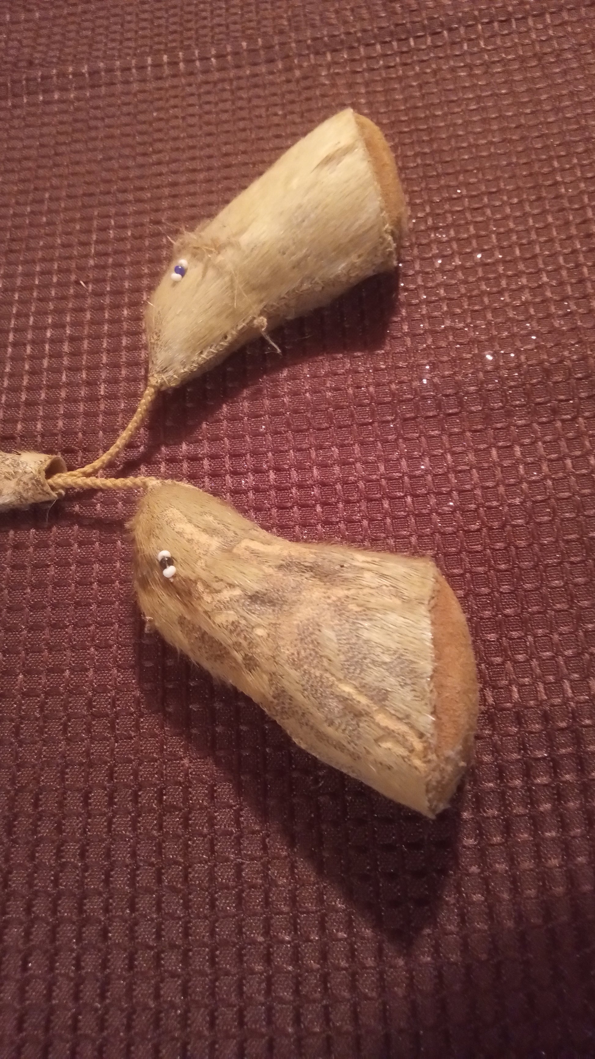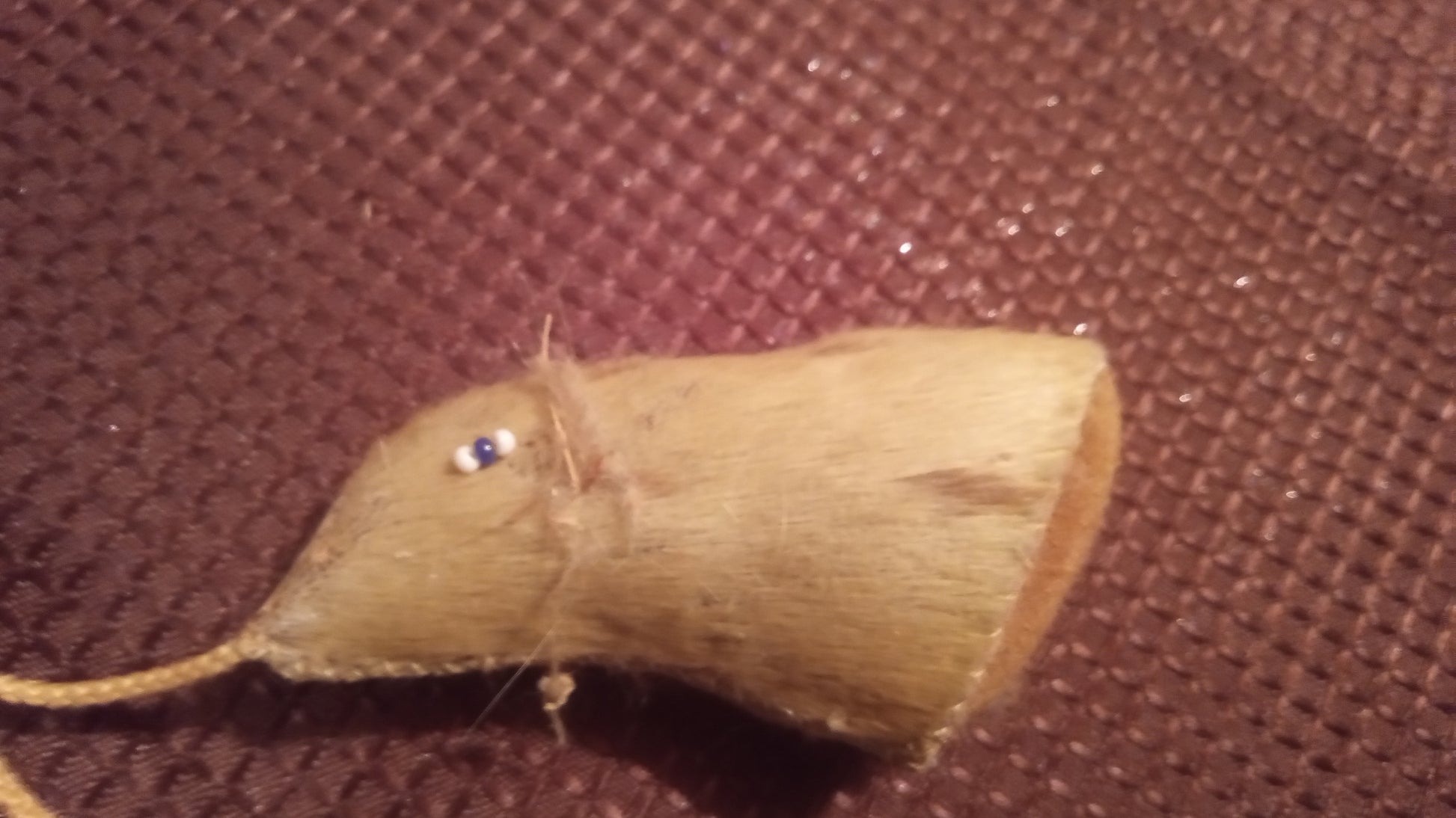 Materials: Real animal fur/hide, natural or imitation sinew cord, small seed beads.